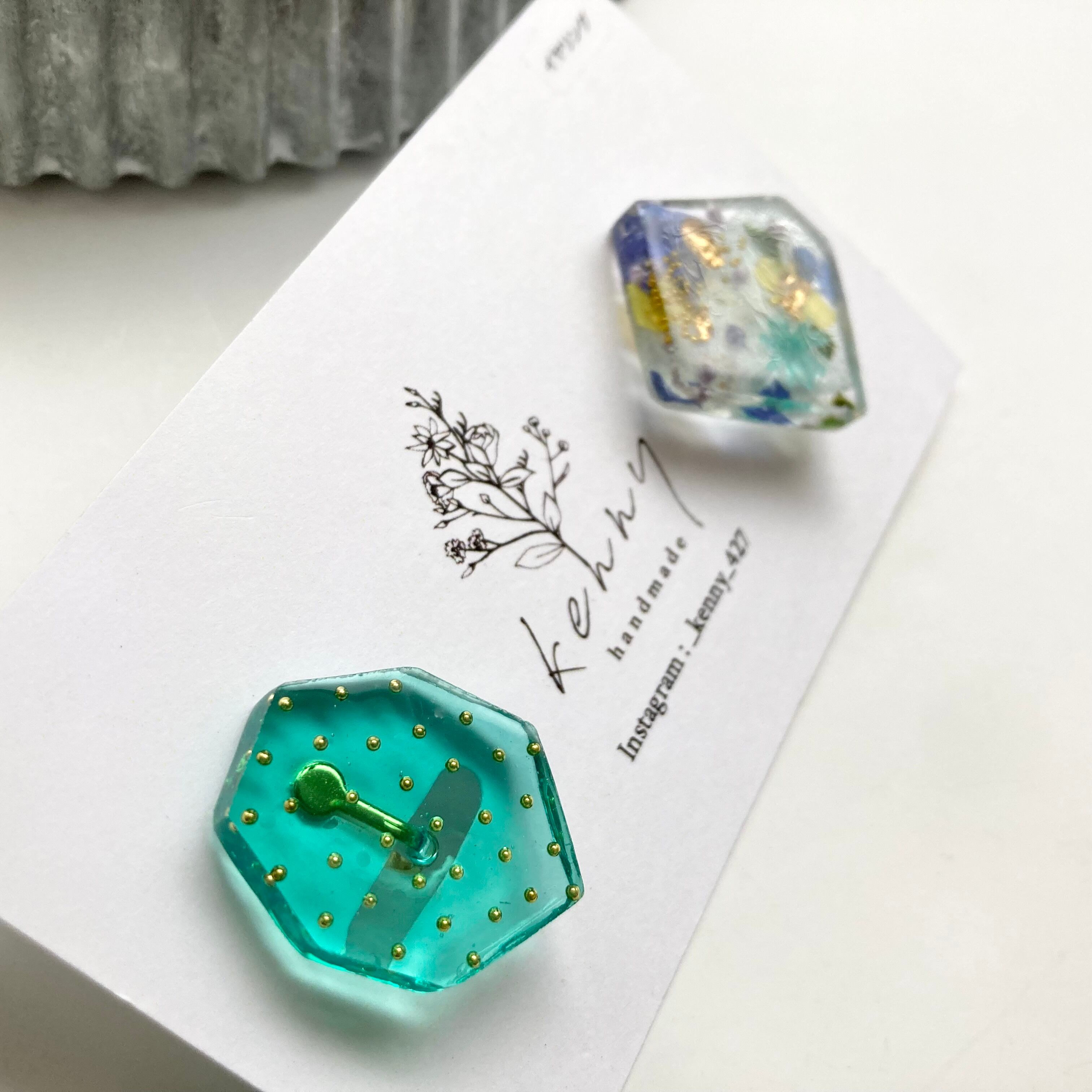 ドライフラワーや金箔など、様々な素材をカケラにし埋め込みました。